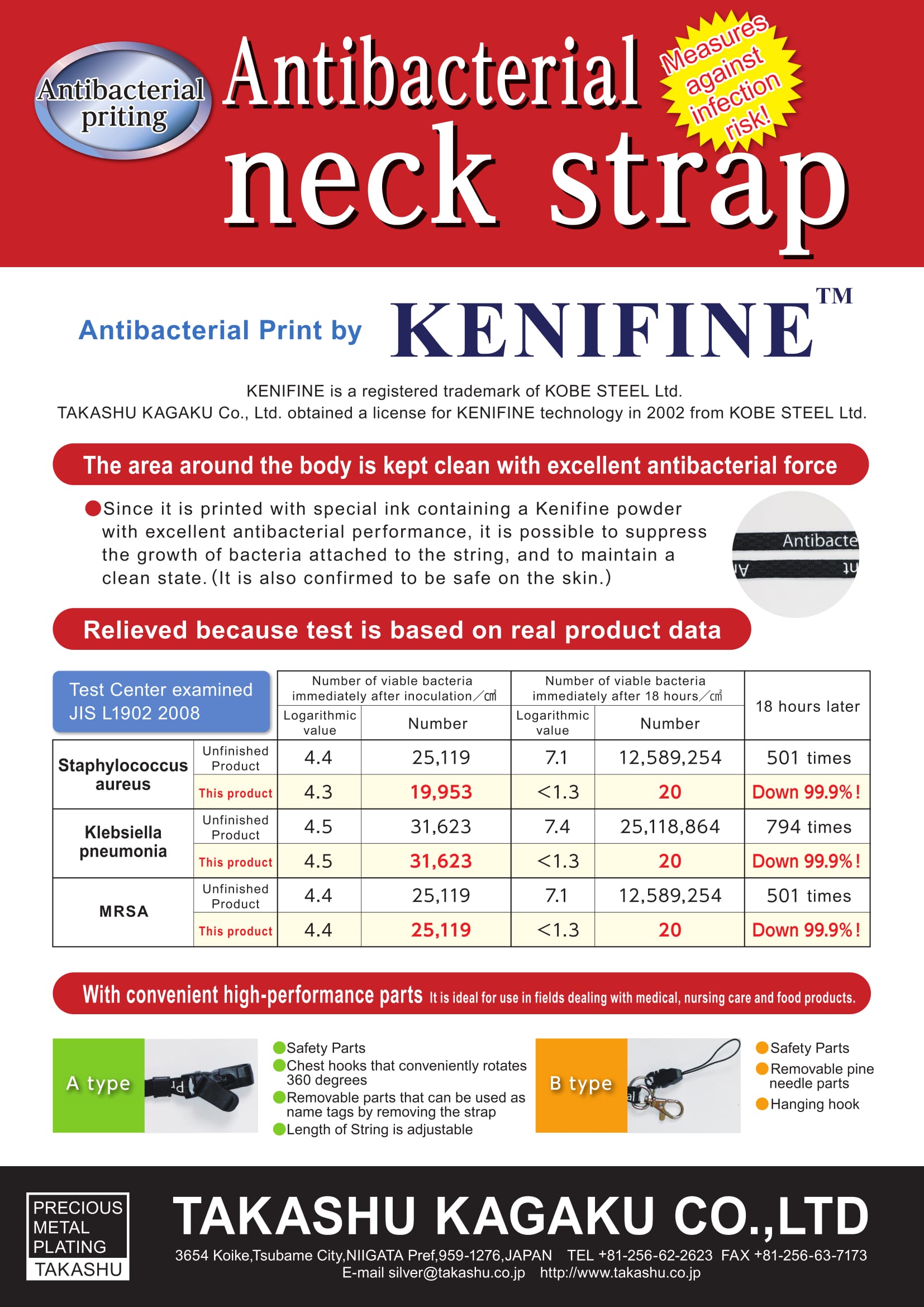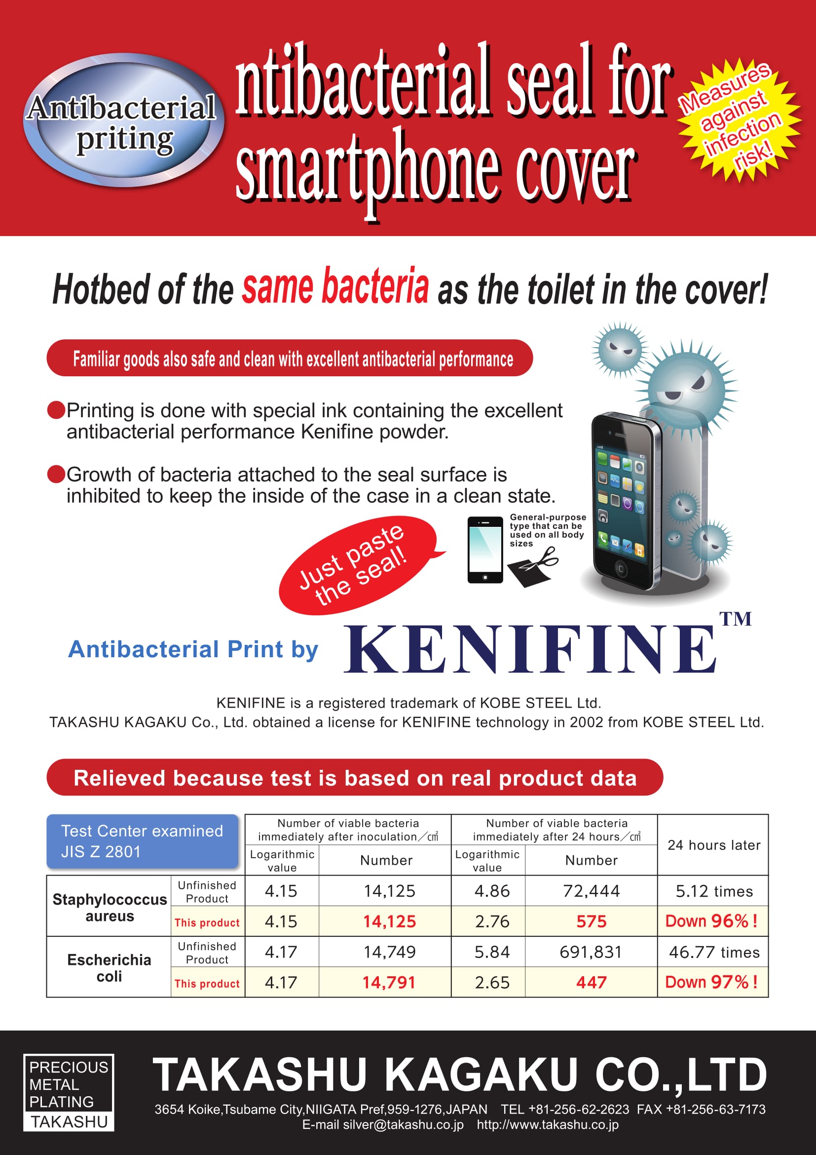 This year, we are introducing brand new anti-bacterial smartphone seal and anti-bacterial neck straps. You can take a look product flyers on above. The anti-bacterial lab. test is based on JIS Z 2801 and JIS L2901.(JIS standards for anti-bacterial is almost as same as ISO 22196:2007)